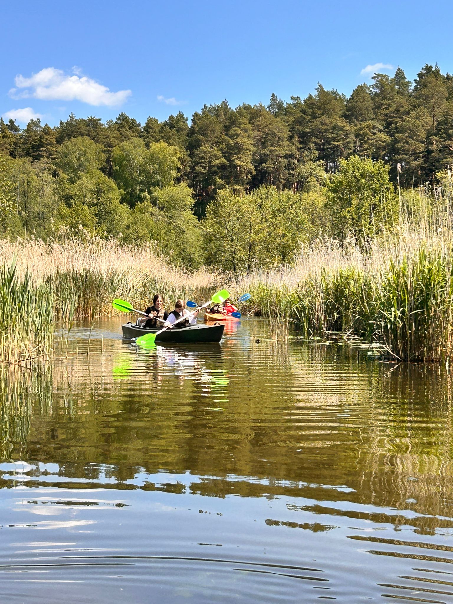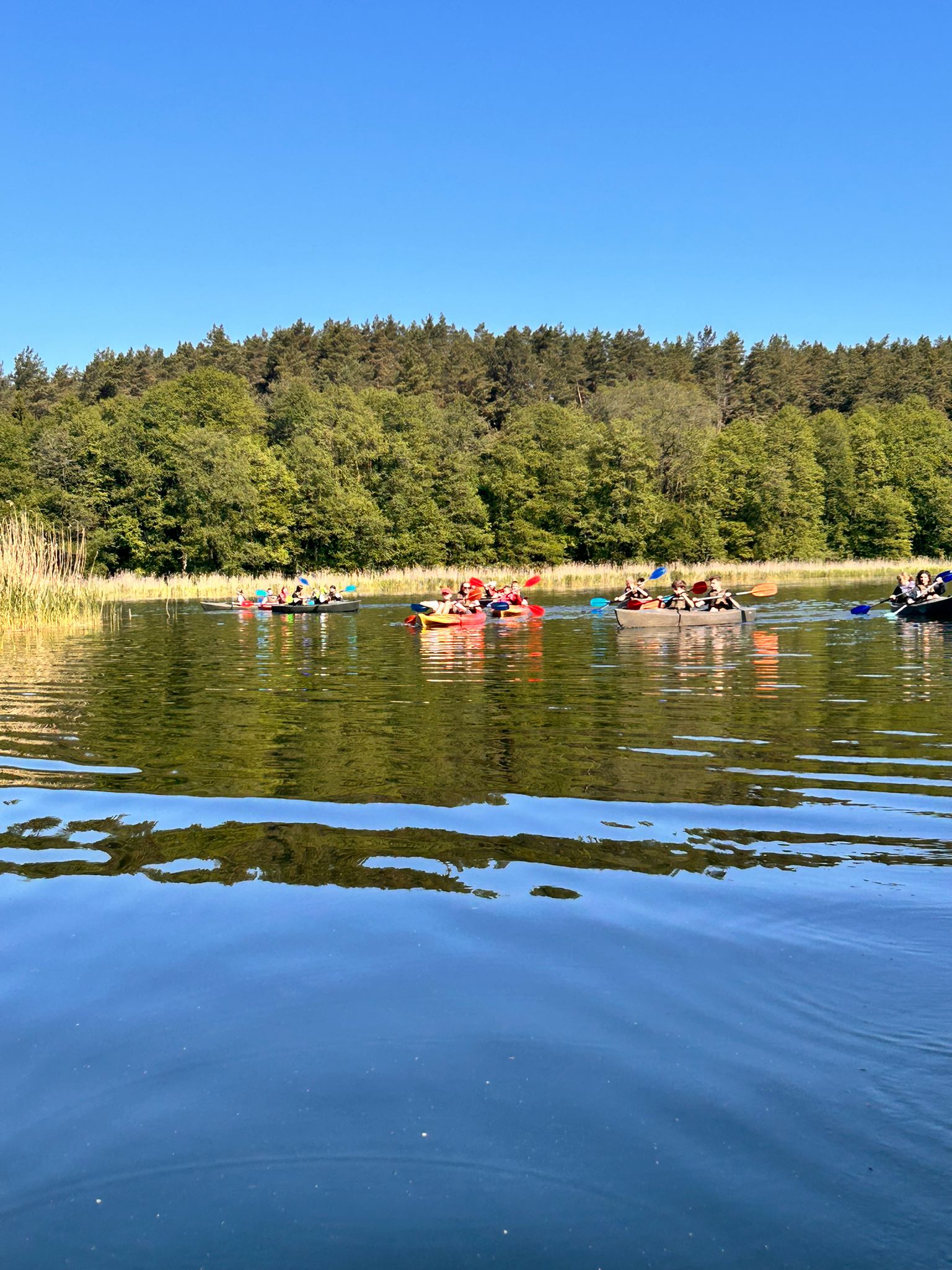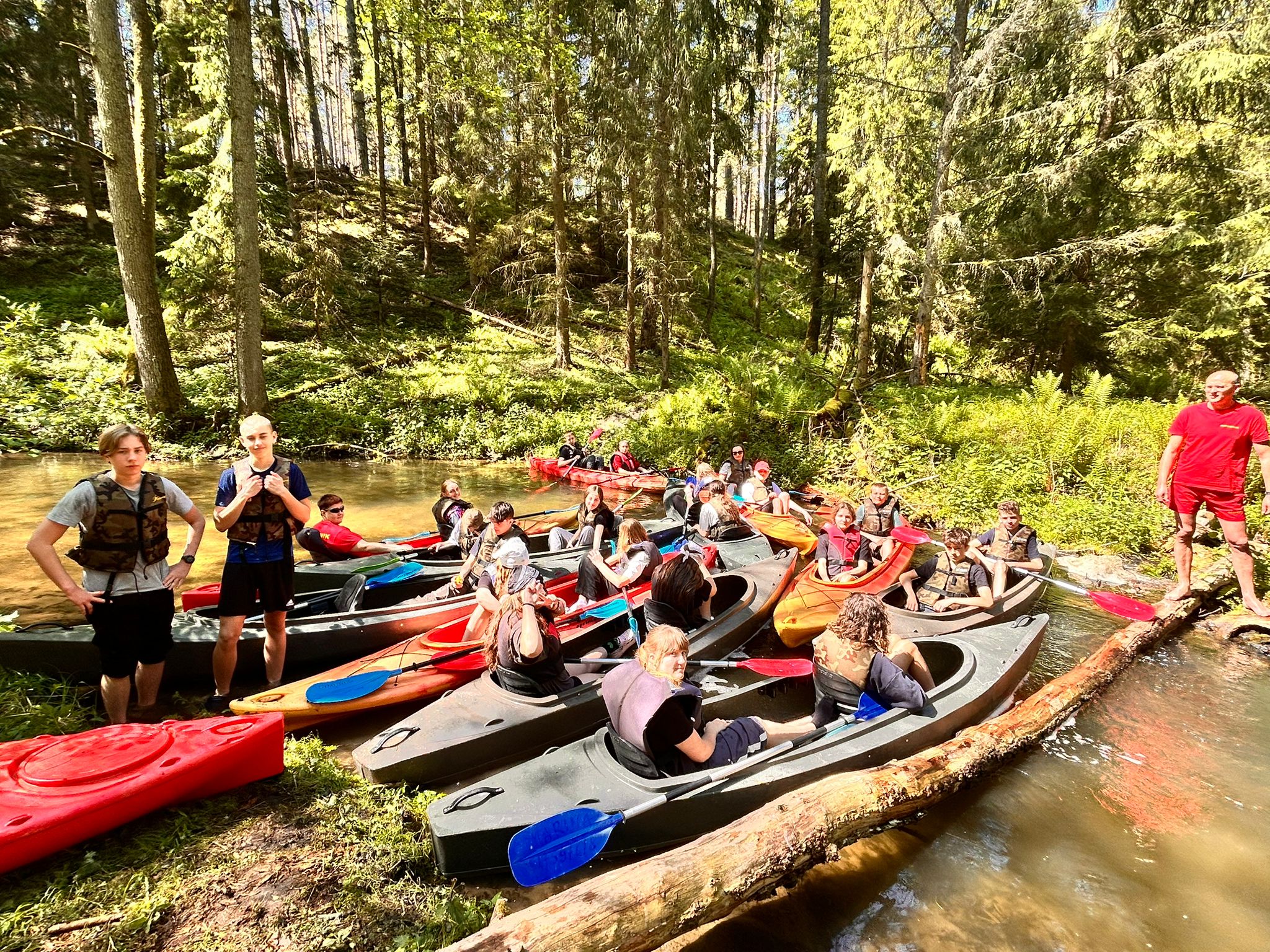 27.05.2025 r. uczniowie z klasy 7 a, opiekunowie (p. Godlewska, p. Konopka, p. Szaciłowska) oraz ratownicy wzięli udział w spływie kajakowym Marózką. Ta płytka i kręta rzeka jest lewym dopływem Łyny, największej rzeki Warmii. Płynie w głębokim wąwozie, a kajakarze w cieniu sosnowego lasu oddają się obcowaniu z naturą. Piaszczyste dno, nieduża głębokość na prostych odcinkach oraz niski brzeg pozwalają na postój i regenerację sił. Na rzece występuje kilka przeszkód w postaci powalonych pni drzew. Spływ kajakowy to prawdziwy raj dla tych, którzy chcą odpocząć od miejskiego zgiełku i podziwiać piękno dzikiej przyrody.