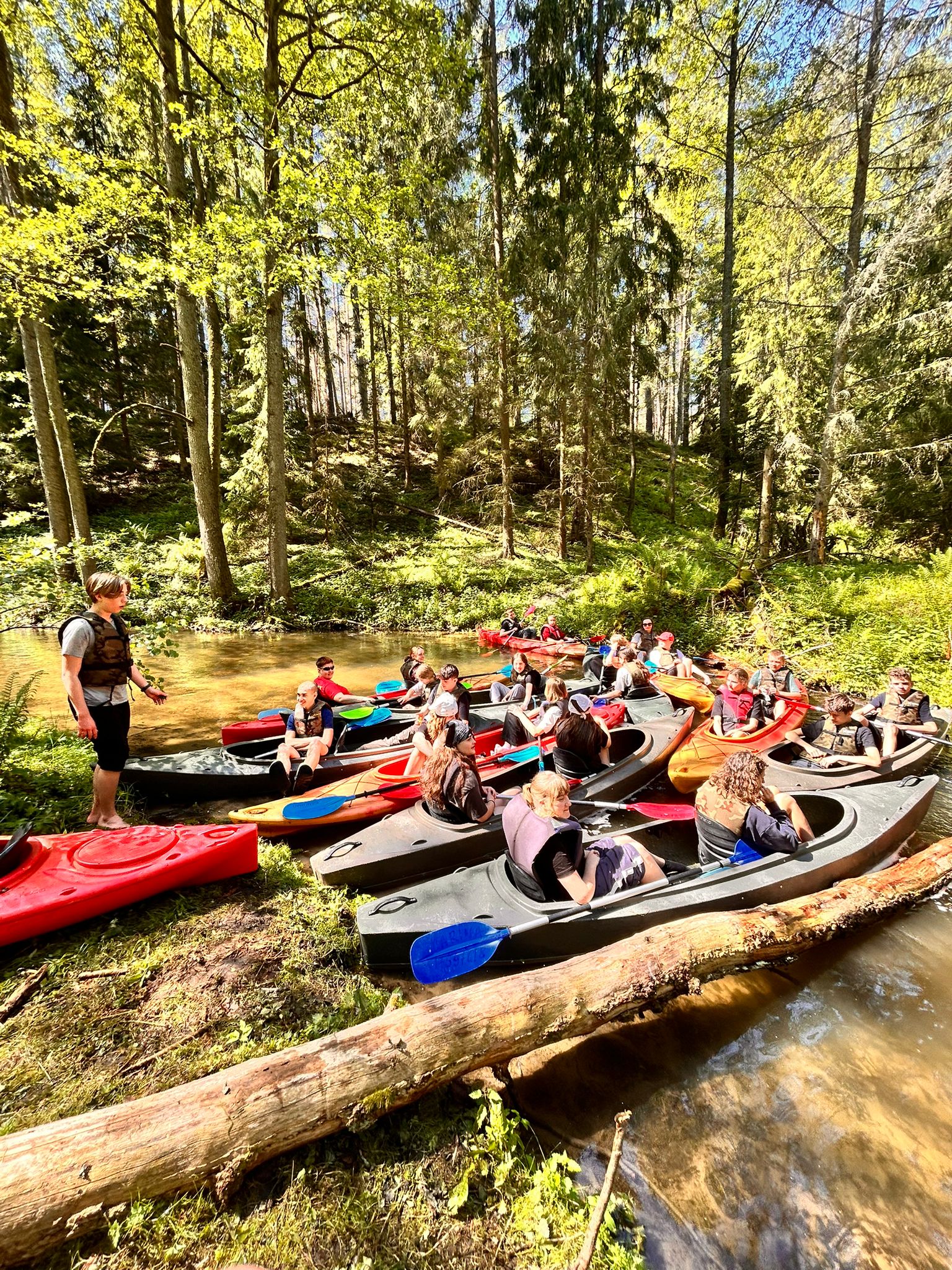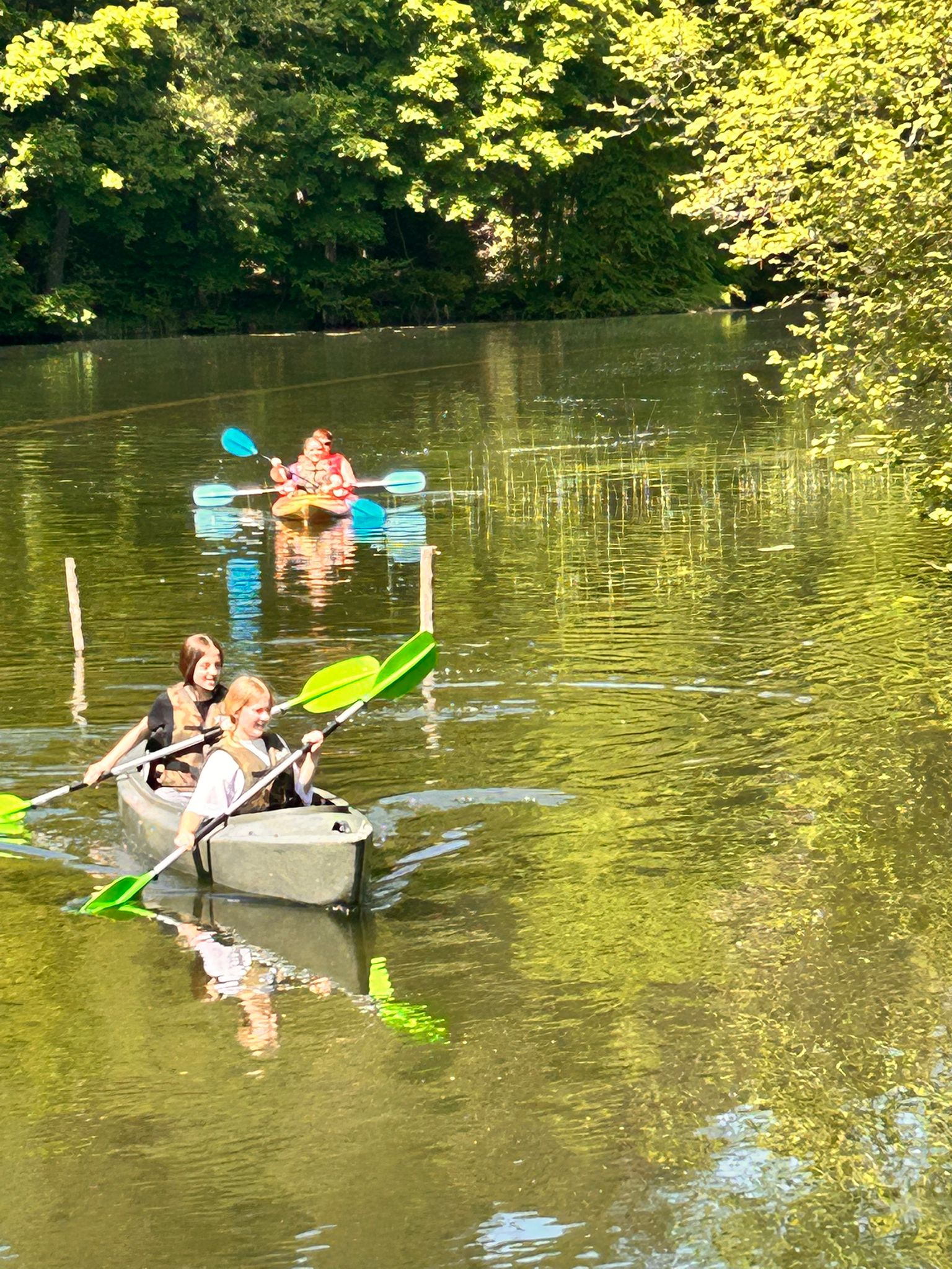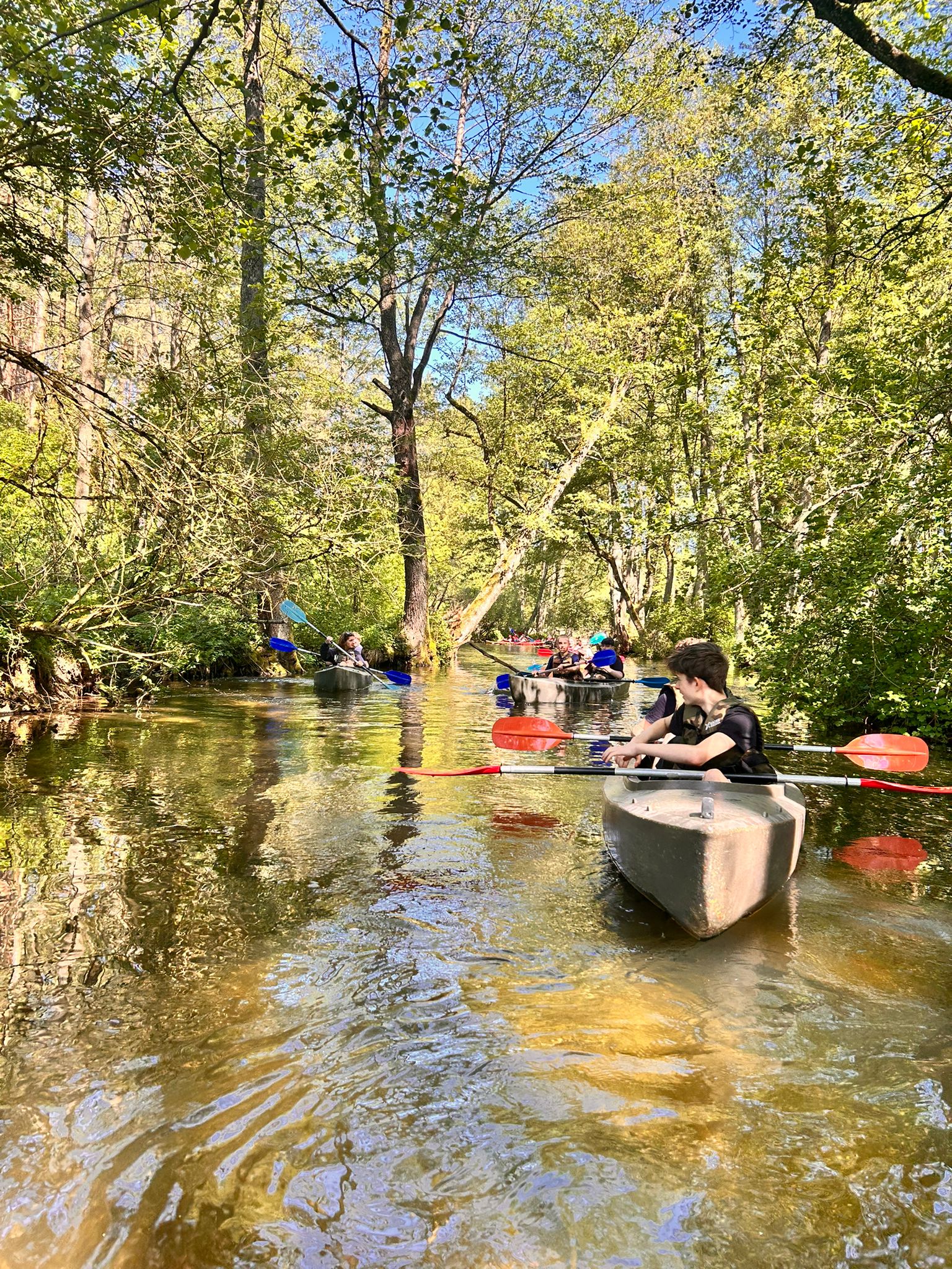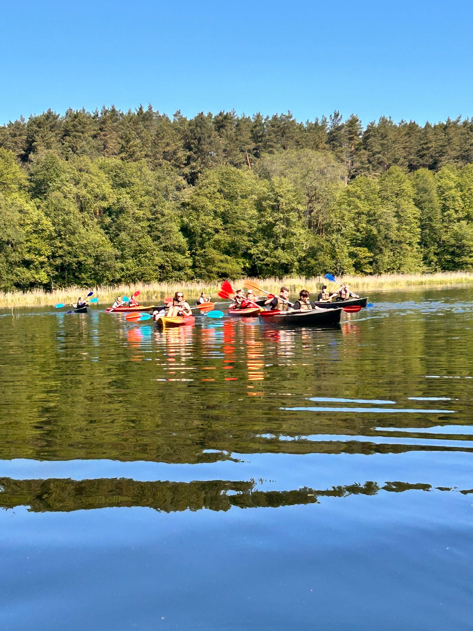 27.05.2025 r. uczniowie z klasy 7 a, opiekunowie (p. Godlewska, p. Konopka, p. Szaciłowska) oraz ratownicy wzięli udział w spływie kajakowym Marózką. Ta płytka i kręta rzeka jest lewym dopływem Łyny, największej rzeki Warmii. Płynie w głębokim wąwozie, a kajakarze w cieniu sosnowego lasu oddają się obcowaniu z naturą. Piaszczyste dno, nieduża głębokość na prostych odcinkach oraz niski brzeg pozwalają na postój i regenerację sił. Na rzece występuje kilka przeszkód w postaci powalonych pni drzew. Spływ kajakowy to prawdziwy raj dla tych, którzy chcą odpocząć od miejskiego zgiełku i podziwiać piękno dzikiej przyrody.